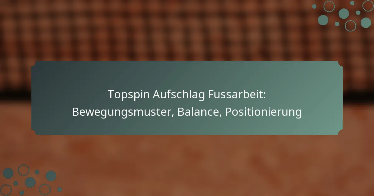Fußarbeitsübungen sind entscheidend für die Verbesserung der Ausführung des Topspin-Aufschlags, da sie Agilität, Balance und Positionierung verbessern. Effektive Bewegungsmuster ermöglichen es den Spielern, Kraft und Spin zu erzeugen, während sie die Kontrolle während der Aufschläge aufrechterhalten.